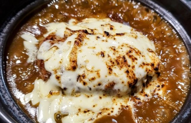 ハンバーグステーキと焼チーズの鍋カレーうどん